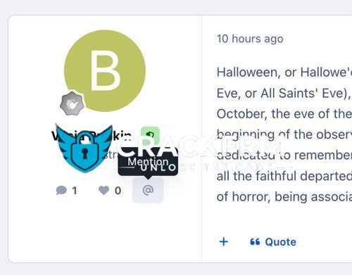 Member mention - application allows you to add a button to mention a user in his message.