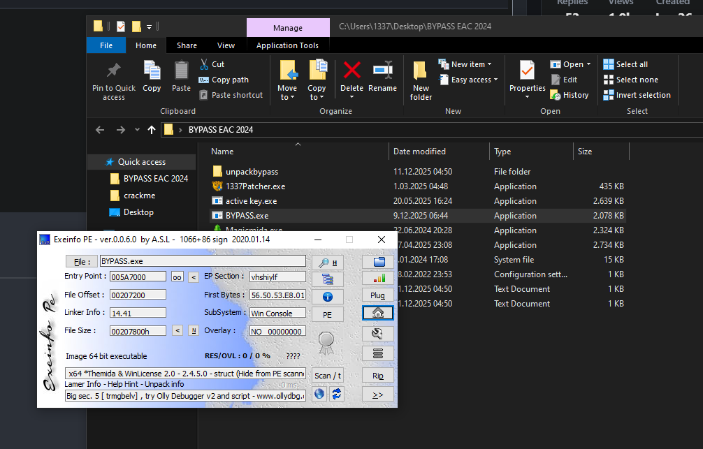 Merhaba, vmp geçmeden patchlediğim zaman rahatlıkla crackleyebiliyorken vmp geçtikten sonra 1337 patchleyince çalışmıyor. birebir aynı işlem neden olabilir? Source ve exe yi bırakıyorum aşşağıya. Cracked vmp kullandıgım için unsafe olarak gözüküyor. https://github.com/bukle1/basiccrackme/blob/main/main.cpp https://dosya.co/ce8ztmjfig17/crackme.vmp.exe.html https://www.virustotal.com/gui/file-analysis/MDJkZTc1NzRiNGE1ZmJjNzRiNjlmODE0NjFkNGJmOGY6MTc2NTQyNTYyNQ== https://www.youtube.com/watch?v=Dc4wohoeLDs
